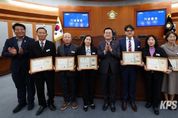 KPSNEWS 김채경 기자 | 오산시의회는 6일 본회의장에서 ‘오산시의회 의장 표창 시상식’을 열고 지역 발전과 주민 자치 활성화에 헌신한 위원 8명에게 의장 표창을 수여했다. 수상자는 ▲중앙동 최하늘 위원 ▲대원1동 전해자 위원 ▲대원2동 권옥선 위원▲남촌동 박순용 위원 ▲신장1동 정정숙 위원 ▲신장2동 이선자 위원 ▲세마동 남호석 위원 ▲초평동 이주왕 위원 등 모두 8명으로 주민과 행정을 잇는 가교로서 지역사회 발전에 기여한 공로를 인정받았다. 이상복 의장은 인사말을 통해 “지역 곳곳에서 시민들의 더 나은 삶을 위해 헌신해 오신 여러분이야말로 진정한 풀뿌리 민주주의의 주인공”이라고 강조했다. 이어 “그동안 현장에서 묵묵히 책임을 다해준 주민자치위원들의 노고에 깊이 감사하다”며 “앞으로도 변함없이 주민자치위원회가 걷는 길이 오산의 내일을 밝히는 힘이 되길 바란다”고 말했다. 이 의장은 “오산시의회는 주민의 참여와 자치가 더욱 활짝 꽃필 수 있도록 든든한 지원군이 될 것”이라고 덧붙였다.