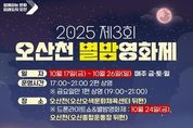 KPSNEWS 김채경 기자 | 오산시는 오는 10월 17일부터 26일까지 매주 금·토·일 저녁, 오산천(오색문화체육센터 뒤편)에서 시민들이 야외에서 영화를 즐길 수 있는 '2025 제3회 오산천 별밤영화제'를 개최한다고 밝혔다. 이번 영화제는 남녀노소 누구나 즐길 수 있는 총 10편의 애니메이션과 영화를 상영하며, 오산천을 방문하는 시민이라면 누구나 자유롭게 관람할 수 있다. 특히 올해는 관람객 편의를 위해 ‘배달음식 픽업존’을 운영하여, 휴대폰 앱으로 주문한 음식을 지정된 장소에서 간편하게 수령할 수 있다. 관람객들은 돗자리나 방석 등을 지참해, 자연 속에서 맛있는 음식과 함께 여유로운 영화 관람을 즐길 수 있다. 시 관계자는 “도심 속 자연과 문화가 조화를 이루는 오산천에서 열리는 이번 별밤영화제가 시민들에게 힐링과 특별한 문화 체험의 기회가 되길 바란다”고 전했다.