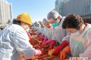 KPSNEWS 김채경 기자 | 용인특례시는 3일 ‘세리박(Seri Pak) with용인’에서 ‘2025 용인 온(溫)나눔 김장 페스티벌’이 열렸다고 밝혔다. 시민 주도형 자원봉사 프로그램 확산과 지역사회 통합을 목표로 마련된 이 행사는 재단법인 용인시자원봉사센터와 용인시 새마을회, 대한적십자사 용인시지구협의회가 공동으로 주최·주관했다. 행사에는 개인 자원봉사자를 비롯해 ▲용인애향회 ▲상상마을봉사단 ▲유림2동 통장협의회 ▲봉사단체 '이루다' ▲처인드리미봉사단 ▲심리미술봉사단 ▲씨담송 도시농업스쿨 ▲국제표준안전재단 ▲맑은천살리기실천운동본부 ▲녹색어머니회 등 9개 기관이 함께했다. 용인시자원봉사센터가 직접 운영하는 용인특례시 자원봉사대학 봉사단, 2030 청년봉사단과 시 협업기관인 ▲용인시청소년미래재단 ▲용인시산업진흥원 ▲용인시정연구원 관계자도 취약계층의 따뜻한 겨울나기를 위한 온기나눔에 동참했다. 이상일 시장은 여러 곳을 돌며 각 단체 관계자, 봉사자들과 함께 김장김치를 담았고, 시민들의 기념촬영 요청에 일일이 응했다. 이 시장은 작업이 끝난 뒤 인사말에서 “여러분이 오늘 담근 김장김치에는
