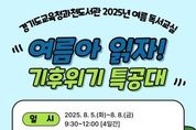 KPSNEWS 김채경 기자 | 경기도교육청과천도서관이 다가오는 여름방학을 맞이하여 ‘여름아 읽자! 기후위기 특공대’를 주제로 독서교실을 운영한다. 여름 독서교실은 8월 5일부터 8일까지 4일간 초등학교 4학년을 대상으로 운영되며 독서와 체험활동 통해 환경보호의 소중함과 기후위기 등을 고민해보는 시간을 가지게 된다. 주요 프로그램으로는 상상력과 창의성을 키우고 환경보호를 실천할 수 있도록 ▲그림책 예술놀이 ▲비경쟁독서토론 ▲업사이클링 체험활동 등이다. 여름 독서교실 수강신청은 7월 15일부터 경기도교육청과천도서관 누리집을 통해 가능하다. 조중복 경기도교육청과천도서관장은 ‘기후위기는 아이들에게 큰 미래의 과제’라며 “독서교실이 환경에 대한 이해와 실천의 시작점이 되길 바라며 아이들이 책 속에서 자연을 사랑하는 마음을 키우고 실천으로 연결하는 값진 시간이 되길 바란다”고 말했다.