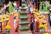KPSNEWS 김채경 기자 | 화성특례시는 10월 18일, 용주사(주지 성효 스님) 일원에서 민족의 평화와 안녕을 기원하는 불교 전통의례 ‘불기 2569년 수륙대재’를 봉행했다고 밝혔다. 수륙대재는 물과 육지에서 떠도는 외로운 무주고혼들을 위로하고 구제하기 위해 부처님의 가르침을 설하고 음식을 공양하는 불교의식이다. 용주사는 고려시대부터 이어져온 이 전통문화를 현대에 되살리고 시민들의 문화 향유 기회를 확대하고자 2017년부터 수륙대재를 정기적으로 봉행해오고 있다. 특히 올해 용주사 수륙대재는 역사성을 한층 더 부각시켰다는 평을 받았다. 영가들을 맞는 시련의식을 시작으로 옛 수륙재가 그러했듯 왕의 교지와 하사품을 전달하는 역할을 화성특례시장(정명근 시장)이 진행하여 전통문화 고증에 신경을 쏟은 모습이였다. 그 후로는 영가를 대접하고 깨끗하게 목욕시키는 대령, 관욕 의식, 수륙재 공간을 정돈하고 설행 공간을 정하는 사자단과 오로단, 상단과 중단, 하단의식, 등 불교 전통 의례의 정수를 보여주었다. 정명근 화성시장은 축사에서“정조대왕의 효심과 애민 정신이 녹아있는 용주사에서 진행되는 수륙대재의 의미와