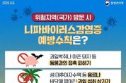 KPSNEWS 김채경 기자 | 오산시는 질병관리청이 지난 9월 8일 니파바이러스감염증을 제1급감염병으로 신규 지정함에 따라 시민들에게 감염예방수칙 준수와 개인위생 관리에 철저를 기해줄 것을 당부했다. 니파바이러스감염증은 현재 국내 유입 가능성은 낮지만, 인체 감염 시 치명률이 40~75%에 달하는 것으로 알려져 있어 철저한 관리가 필요한 신종감염병이다. 니파바이러스는 사람과 동물 모두에 감염될 수 있으며, 감염된 동물(과일박쥐, 돼지 등)과의 접촉이나 오염된 식품(대추야자수액 등) 섭취를 통해 전파될 수 있다. 또한 환자의 체액과 밀접 접촉 시 사람 간 전파도 가능하다. 특히 최근 환자 발생이 지속되고 있는 검역관리지역인 인도와 방글라데시를 방문한 여행객은 귀국 후 14일 이내에 발열, 두통, 인후통 등 의심 증상이 나타날 경우 질병관리청 콜센터 또는 관할 보건소로 즉시 신고해야 한다. 예방을 위해서는 ▲야생동물과의 접촉 피하기 ▲오염된 음료·식품 섭취 금지 ▲환자와 직접 접촉 피하기 ▲손 씻기 등 개인위생 관리 철저가 필요하다. 김태숙 오산시보건소장은 “코로나19 경험을 통해 신종감염