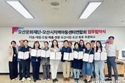 KPSNEWS 김채경 기자 | 오산문화재단은 9일 오산시지역아동센터연합회와 오산 청소년들이 건강한 사회 구성원으로 성장할 수 있도록 상호협력을 하기 위한 업무협약을 체결했다고 밝혔다. 협약식은 오산문화재단에서 열렸으며, 최상열 오산문화재단 사무국장과 이광훈 오산시지역아동센터연합회장 및 관계자들이 참석한 가운데 진행됐다. 오산시지역아동센터연합회는 '아동복지법' 및 '사회복지사업법'에 근거해 방과 후 돌봄이 필요한 지역 아동의 건전한 성장을 지원하고 종합적인 복지서비스를 제공하는 단체로, 2025년 9월 현재 9개 센터에서 총 272명의 아동을 돌보고 있다. 이번 협약은 청소년들의 열정, 성장, 행복, 창의의 가치를 위해 문화예술교육 및 문화향유를 위한 협력의 중요성을 인식하고 양 기관 간 신뢰감 형성과 필요한 지역 자원 연계 등 상호 협력함을 목적으로 추진됐다. 이광훈 오산시지역아동센터연합회장은 “그동안 ‘꿈을 향해 날개짓하다’ 행사 때마다 적극적으로 도움을 주셔서 감사한 마음을 가지고 있었다”며 “이제는 상호협력으로 센터에서도 청소년들을 위한 문화재단의 문화예술교육 및 다양한 사업에 대해 적극적으로