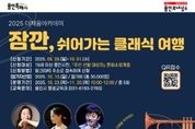 KPSNEWS 김채경 기자 | 용인특례시는 ‘더채움 아카데미’의 일환으로 마련된 ‘잠깐, 쉬어가는 클래식 여행’ 과정에 참여할 시민 40명을 모집한다고 24일 밝혔다. 시는 올해 예술 분야를 주제로 ‘더채움 아카데미’를 운영 중이다. 상반기에는 미술 분야 프로그램 5회를 진행 했으며, 하반기에는 음악을 주제로 프로그램을 선보인다. 하반기의 ‘잠깐, 쉬어가는 클래식 여행’은 클래식으로 스트레스를 해소하고 심리적 안정감을 위한 현장 체험 프로그램으로 준비됐다. 참가자들은 ▲연주자가 직접 들려주는 클래식 이야기 ▲아카펠라 공연 및 체험 ▲나만의 클래식 취향 찾기 등 다채로운 활동을 경험하게 된다. 교육은 오는 10월 23일부터 5주 동안 매주 목요일 오전 10시부터 12시까지 포은아트홀과 파네시마 복합문화공간에서 진행된다. 신청은 9월 29일부터 10월 1일까지 홍보 포스터의 QR코드 또는 링크를 통해 가능하며, 신청자가 많을 경우 저소득 가정, 노인, 청년 등 문화소외계층을 우선 선발한다. 자세한 사항은 평생학습관 홈페이지 또는 평생교육과를 통해 확인할 수 있다.
