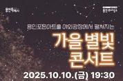 KPSNEWS 김채경 기자 | 용인문화재단은 오는 10월 10일 오후 7시 30분, 새롭게 단장한 용인포은아트홀 야외광장에서 ‘가을 별빛 콘서트’를 개최한다. 이번 공연은 가을밤의 정취 속에서 시민들에게 특별한 추억을 선사하고, 용인의 대표 광장형 축제를 알리기 위해 마련됐다. ‘가을 별빛 콘서트’에는 가수 거미, 유리상자 이세준, 힙합 아티스트 행주·마린·블랙나인, 그리고 소프라노 정나리가 출연해 대중음악·클래식·힙합을 아우르는 다채로운 무대를 선보일 예정이다. 이번 공연은 무료로 진행되며, 사전 댓글 이벤트를 통한 예약석(현재 마감)과 공연 당일 현장 선착순 입장석으로 운영된다. 현장 참여자는 오후 5시부터 대기 후 오후 6시부터 선착순 입장할 수 있으며, 돗자리석과 계단석 등 다양한 방식으로 자유롭게 관람할 수 있다. 특히 이번 ‘가을 별빛 콘서트’는 시민 참여형 현장 이벤트도 마련됐다. 입장객 1,800명에게는 별 모양 무드등이 기념품으로 증정되며, 공연 전에는 중계 카메라 이벤트를 통해 용인포은아트홀 공연 티켓이 제공된다. 본 공연에 앞서 오후 4시부터 예술교육 매개자 ‘아트러너’가 운영하는 문화예술