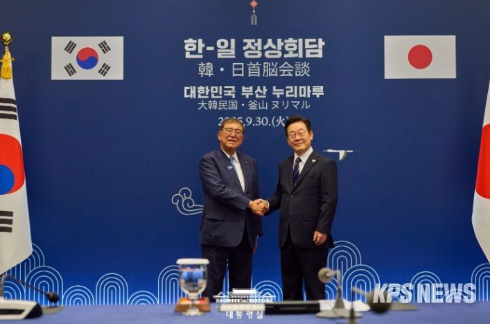 KPSNEWS 김채경 기자 | 이재명 대통령은 9월 30일 '이시바 시게루(石破 茂)' 일본 총리와 부산에서 한일 정상회담을 가졌다. 양 정상은 한일 간 실질 협력 강화 방안과 지역 및 글로벌 차원에서의 협력 필요성에 대해 폭넓고 심도 깊은 의견을 교환했다.