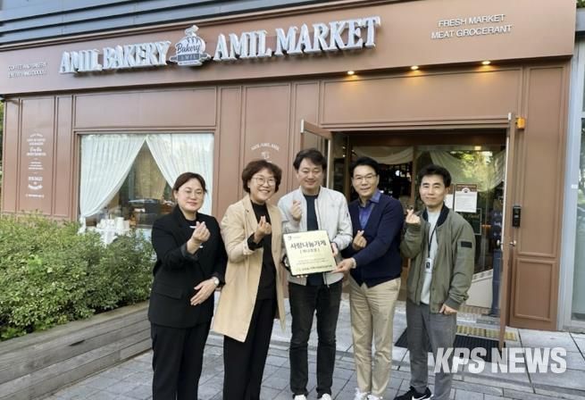 KPSNEWS 김채경 기자 | 수원시 권선구 금곡동 지역사회보장협의체는 지난 16일, 지역 내 어려운 이웃을 돕고 나눔 문화를 확산하기 위해 ‘사랑나눔가게’ 11호점 던킨 수원호매실점, 12호점 애밀베이커리에 현판을 전달했다.