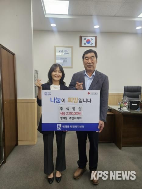 KPSNEWS 김채경 기자 | 수원시 장안구 영화동 주민자치회는 지난 1일, 추석 명절을 앞두고 관내 도움이 필요한 이웃들을 위해 성금 225만원을 기부했다고 밝혔다.