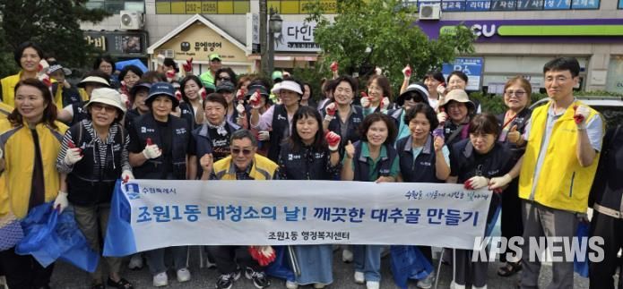 KPSNEWS 김채경 기자 | 수원시 장안구 조원1동은 추석과 APEC을 맞아 추진 중인 국민 참여 운동인 「대한민국 새단장」 캠페인의 일환으로 추석맞이 대청소를 실시했다.