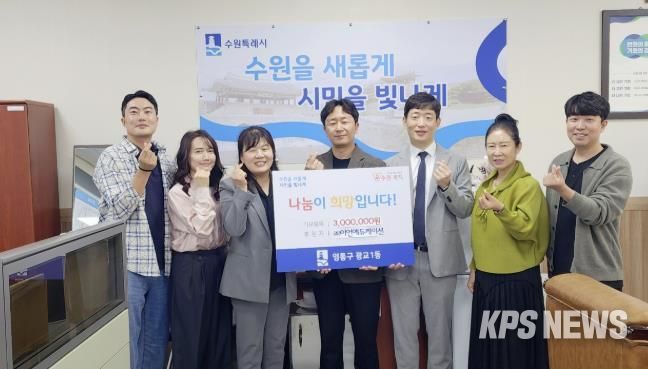 KPSNEWS 김채경 기자 | 수원시 영통구 광교1동은 ㈜이언에듀케이션으로부터 이웃돕기 성금 300만원을 기탁받았다고 밝혔다.