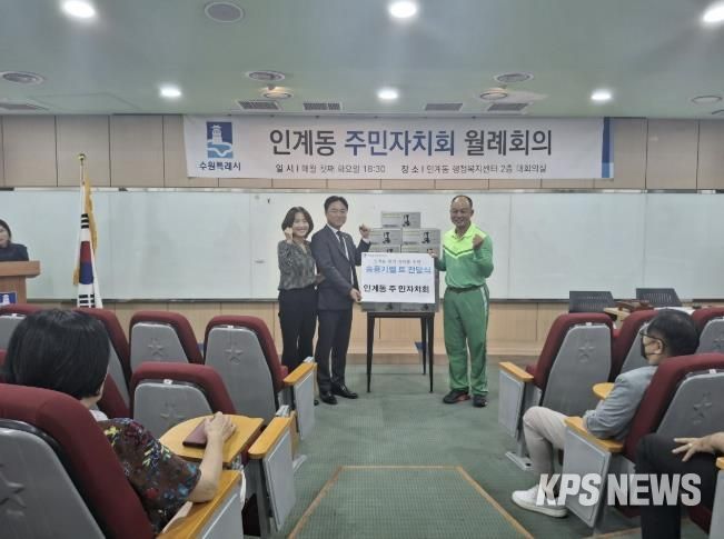 KPSNEWS 김채경 기자 | 수원시 팔달구 인계동 주민자치회는 지난 10월 1일, 가을철 관내 낙엽청소용 송풍기 벨트(100만 원 상당)를 인계동 행정복지센터에 전달했다.