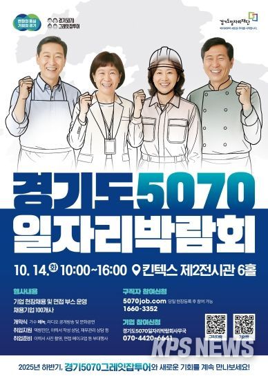 KPSNEWS 김채경 기자 | 경기도와 경기도일자리재단은 오는 14일 고양 킨텍스에서 ‘경기도 5070 일자리 박람회’를 개최한다. 이번 박람회는 경기 북부권을 중심으로 열리며, 50~70대 중장년 구직자와 기업의 직접 연결을 통해 재취업 기회를 넓히는 자리다.