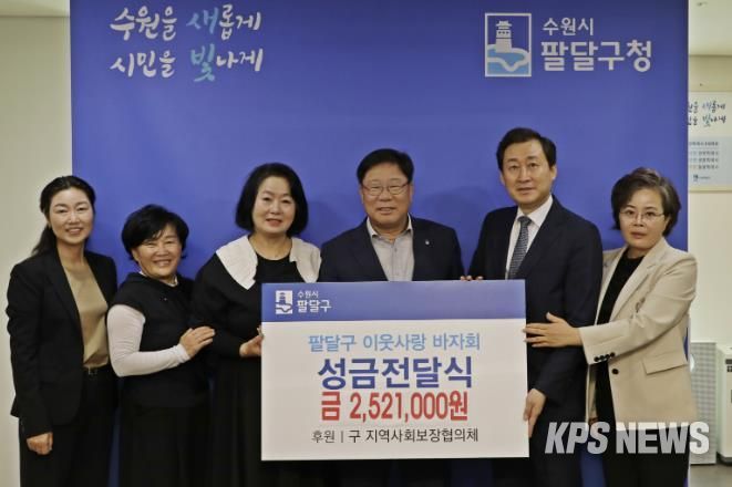 KPSNEWS 김채경 기자 | 수원시 팔달구와 구 지역사회보장협의체는 지난 15일 구청장실에서 ‘팔달구 이웃사랑 바자회’ 성금 전달식을 가졌다.