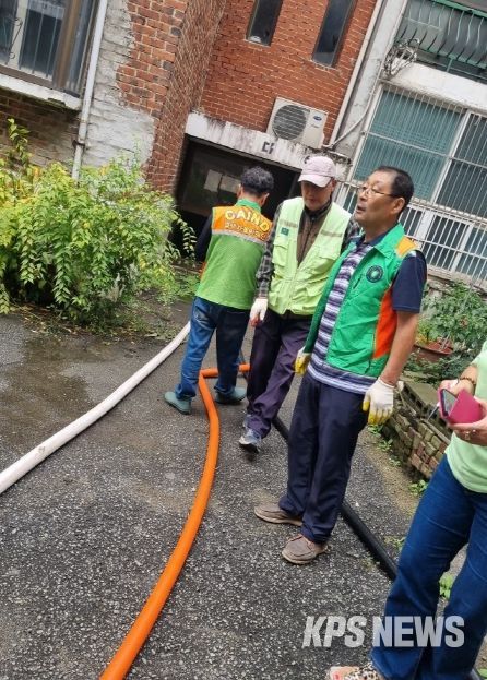 KPSNEWS 김채경 기자 | 평택시 지산동에 있는 빌라 지하실에 지난 14일 침수가 발생했다. 이에 지산동 자율방재단은 즉시 현장으로 출동해 단원 8명과 함께 긴급 배수 작업을 실시하며 주민 피해 최소화에 나섰다.