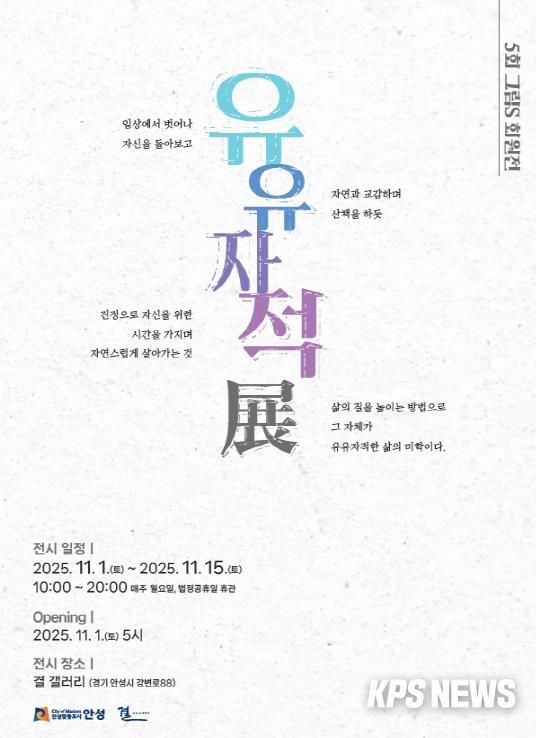 KPSNEWS 김채경 기자 | 안성천 우리동네 작은미술관 결갤러리에서는 오는 11월 1일부터 15일까지 그림스아뜰리에 제5회 회원전 ‘유유자적’이 열린다. 이번 전시는 바쁜 일상 속에서 잠시 걸음을 멈추고, 자연과 교감하듯 마음을 산책하는 여유의 시간을 주제로 마련됐다.
