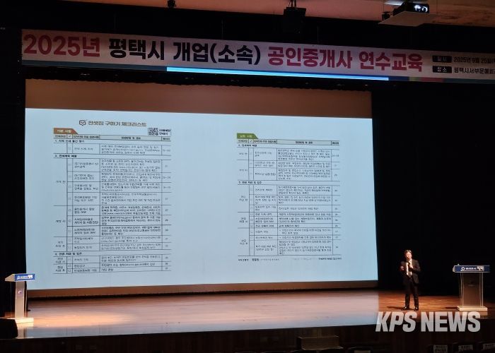 KPSNEWS 김채경 기자 | 평택시는 공인중개사의 전문성 강화 및 시민들의 안전한 부동산 거래 환경 조성을 위해 지난 9월 25일과 10월 29일, 두 차례에 걸쳐 공인중개사와 일반시민 700명을 대상으로 공인중개사 연수 교육을 성공적으로 마쳤다고 30일 밝혔다.