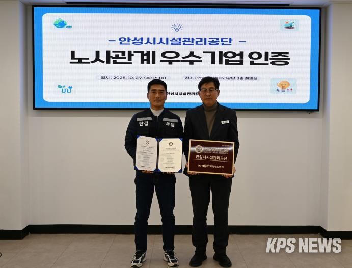 KPSNEWS 김채경 기자 | 안성시시설관리공단은 안성시시설관리공단 노동조합과 함께 상생과 신뢰를 기반으로 한 모범적인 노사문화를 인정받아 ‘노사관계 우수기업’ 인증을 획득하했다고 밝혔다.