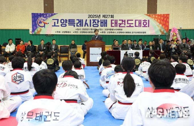 KPSNEWS 김채경 기자 | 2025년 제27회 고양특례시장기 태권도대회가 16일 고양어울림누리 체육관에서 개최됐다. 이동환 고양특례시장은 “갈고닦은 실력과 기량을 유감없이 발휘해 후회 없는 경기를 펼쳐주길”이라고 말했다.