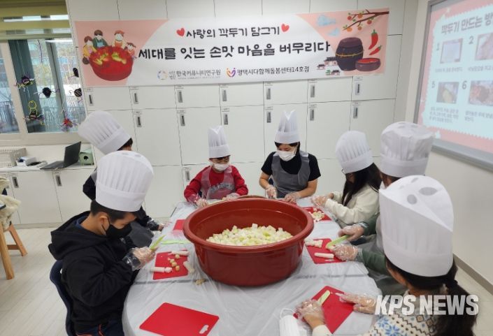 KPSNEWS 김채경 기자 | 평택북부노인복지관은 11월 19일, 평택 고덕에 위치한 다함께돌봄센터 14호점에서 겨울 김장철을 맞아 아이들이 직접 만든 깍두기를 후원받았다고 밝혔다. 이번 나눔은 아이들이 할머니, 할아버지를 생각하며 작은 손으로 무를 썰고 양념을 버무려 완성한 것으로, 세대 간 따뜻한 정을 오롯이 담아냈다.