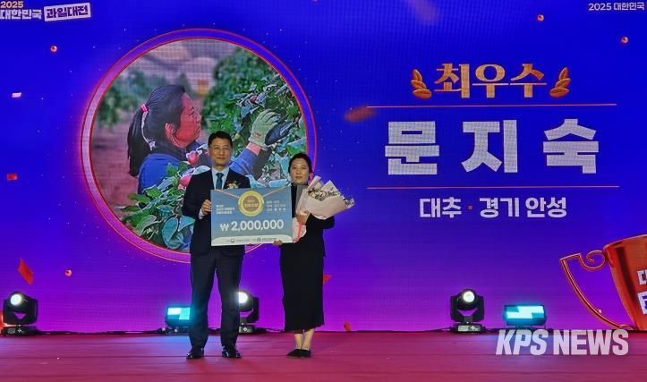 KPSNEWS 김채경 기자 | 농림축산식품부 주최, 한국과수농협연합회 주관으로 하는 ‘2025 대한민국 과일산업대전 대표과일선발대회’에서 안성시가 2023년부터 대추부문에서 최우수상, 우수상을 수상하여 3년 연속 대추부문 최고자리에 올랐다. 수상자로 문지숙 대표가 최우수상(농림축산식품부장관상)으로 선정됐고, 조재곤 대표가 우수상(산림청장상)으로 선정됐다.