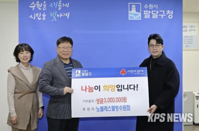 KPSNEWS 김채경 기자 | 수원시 팔달구은 지난 17일, 노블레스웰빙 수원점(대표 김현수)에서 팔달구청을 방문하여 관내 저소득층을 위한 성금을 전달했다고 밝혔다.