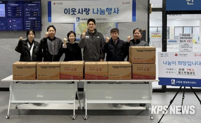 KPSNEWS 김채경 기자 | 수원시 팔달구 고등동은 12월 24일, 관내 퍼스트 태권도장에서 연말을 맞아 어려운 이웃을 위해 라면을 기부했다고 밝혔다.