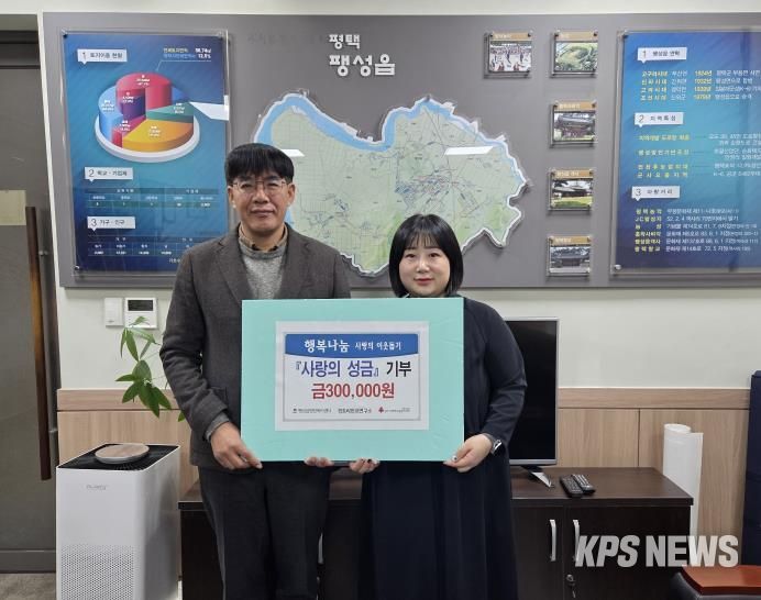 KPSNEWS 김채경 기자 | 경토리민요연구소의 박정은 대표는 지난 24일, 팽성읍 행정복지센터를 방문해 저소득 가구 지원을 위한 성금 30만 원을 전달했다.