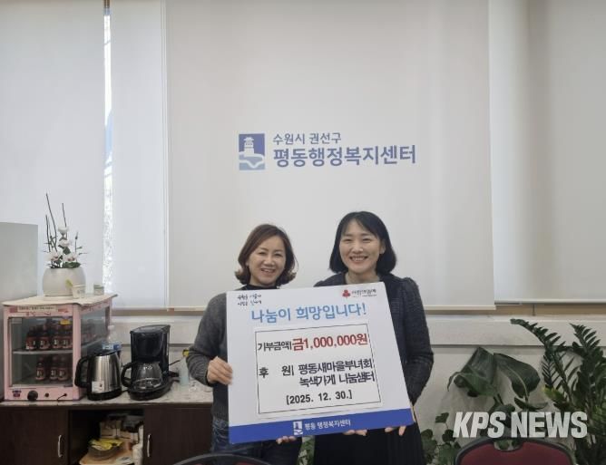 KPSNEWS 김채경 기자 | 지난 30일 수원시 평동 부녀회는 관내 어려운 이웃을 돕기 위해 녹색가게 운영을 통해 얻은 수익금 100만 원을 기부했다.