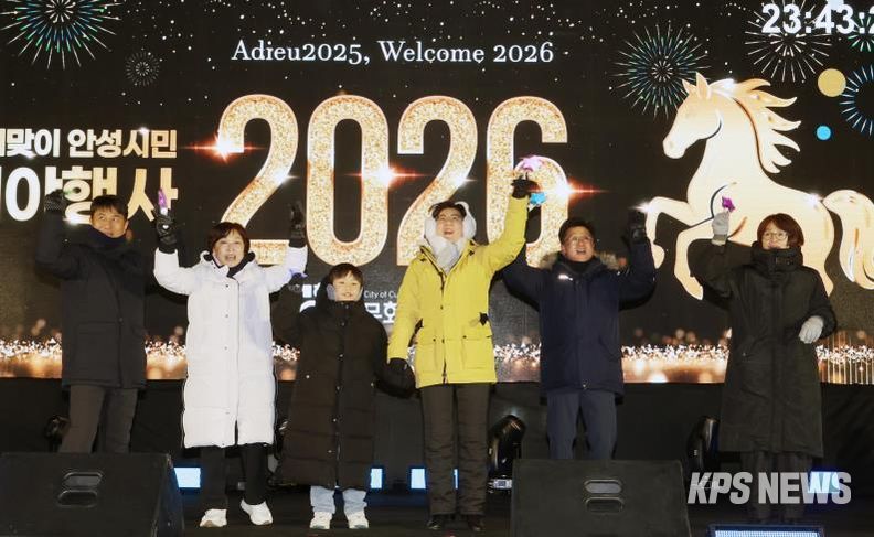 KPSNEWS 김채경 기자 | 안성시가 후원하고 안성문화원이 주관한 '2026년 새해맞이 안성시민 제야행사'가 12월 31일 밤 안성맞춤아트홀 야외무대에서 시민들의 큰 호응 속에 안전하고 차분하게 마무리됐다.