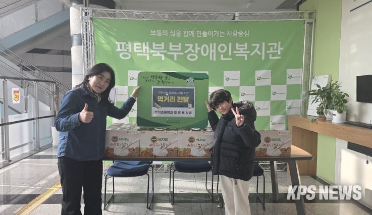 KPSNEWS 김채경 기자 | 평택북부장애인복지관은 1월 16일 14시, 이충동 반지초등학교 오윤호 학생으로부터 먹거리(두유 20박스)를 후원받았다.