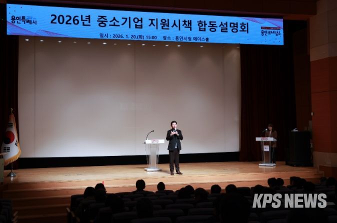 KPSNEWS 김채경 기자 | 용인특례시는 20일 시청 에이스홀에서 지역 내 중소기업 지원 정책을 설명하는 ‘2026년 중소기업 지원시책 합동설명회’를 열었다.