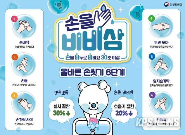 올바른 손 씻기는 감염병 예방을 위한 가장 쉽고 효과적인 방법으로, 흐르는 물에 비누로 30초 이상 손을 씻으면 최근 유행 중인 인플루엔자와 노로바이러스 등 장관감염증과 호흡기 감염병 예방에 큰 효과가 있다.