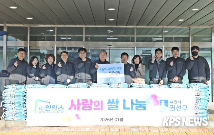 KPSNEWS 김채경 기자 | 수원시 권선구는 21일 ㈜인익스에서 설 명절을 맞이하여 후원한 백미(10kg) 100포에 대한 전달식을 진행했다.