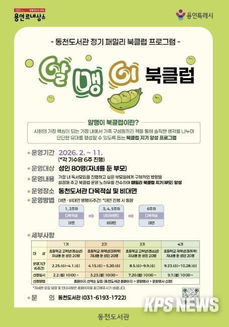 KPSNEWS 김채경 기자 | 용인특례시 동천도서관은 오는 2월 2일부터 선착순으로 ‘알맹이 북클럽’ 참가자를 모집한다고 26일 밝혔다.