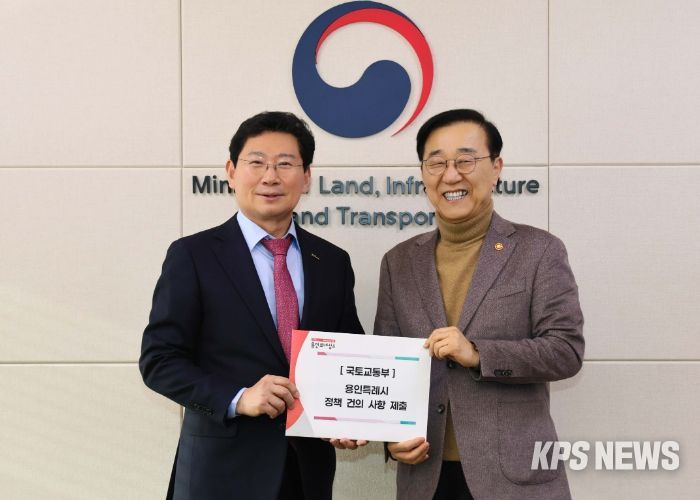 KPSNEWS 김채경 기자 | 이상일 용인특례시장은 26일 정부세종청사에서 김윤덕 국토교통부 장관에게 ‘용인 첨단시스템반도체 클러스터 국가산업단지’ 정상 추진과 경기남부광역철도 ‘제5차 국가철도망 구축계획’ 반영 등 시의 주요 현안을 설명하는 자료를 건네고 국토교통부 지원과 협조를 요청했다.