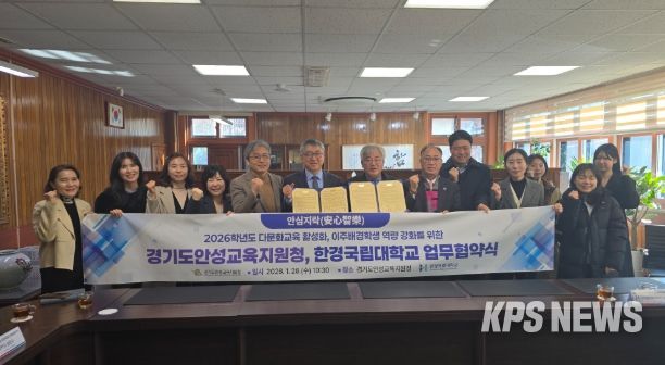 KPSNEWS 김채경 기자 | 경기도안성교육지원청은 2026년 1월 28일, 경기도안성교육지원청에서 한경국립대학교와 함께 안성 관내 다문화교육 활성화 및 이주배경학생 역량 강화를 위한 업무협약(MOU)을 체결했다.