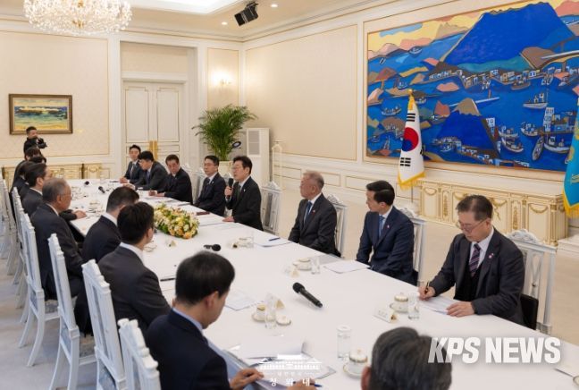 KPSNEWS 김채경 기자 | 이재명 대통령이 4일 10대 그룹 총수들을 만나 "성장의 과실이 기성세대뿐만 아니라 우리 사회에 새롭게 진입하는 청년 세대에게도 골고루 퍼지면 좋겠다"며 "민과 관이 협력해서 청년 취업 기회를 늘리는 일에 조금 더 노력해 주길 부탁드린다"고 당부했다.