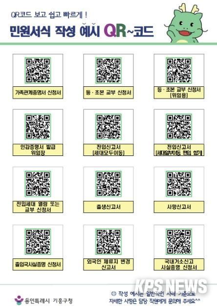 KPSNEWS 김채경 기자 | 용인특례시 기흥구는 시민들이 각종 민원 서식을 작성하는 데 도움을 받을 수 있도록 QR코드를 활용한 민원 서식 작성 예시를 제공한다고 11일 밝혔다.