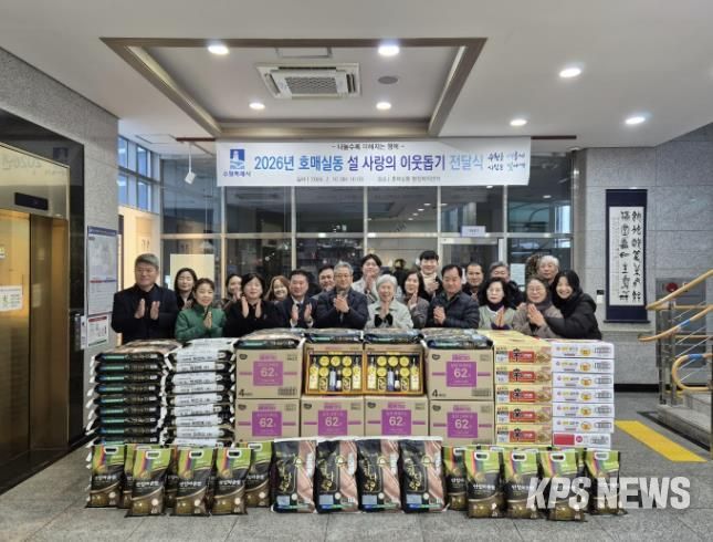 KPSNEWS 김채경 기자 | 수원시 권선구 호매실동에서 2026년 설 명절을 맞이하여 이웃 돕기 전달식을 진행했다.