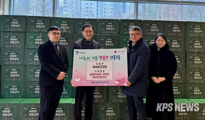 KPSNEWS 김채경 기자 | 수원특례시 영통구 영통3동은 지난 10일, 영통구 소재 보배로운교회로부터 설 명절을 맞아 생필품 꾸러미 50박스를 기탁받았다고 밝혔다.