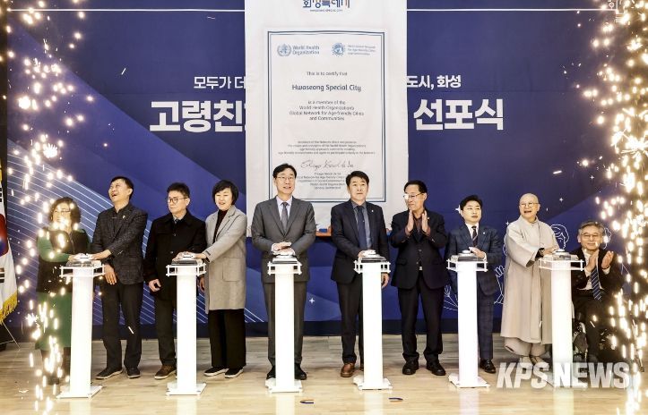 KPSNEWS 김채경 기자 | 화성특례시는 11일 세계보건기구(WHO) 고령친화도시 국제 네트워크(GNAFCC) 인증 획득을 기념하는 '화성특례시 WHO 고령친화도시 인증 선포식'을 개최했다.