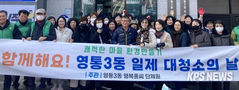 KPSNEWS 김채경 기자 | 수원시 영통구 영통3동 행정복지센터는 지난 12일 설 명절을 앞두고 지역 환경 정비와 깨끗한 마을 조성을 위해 통장협의회와 함께 ‘설맞이 일제 대청소의 날’을 실시했다.
