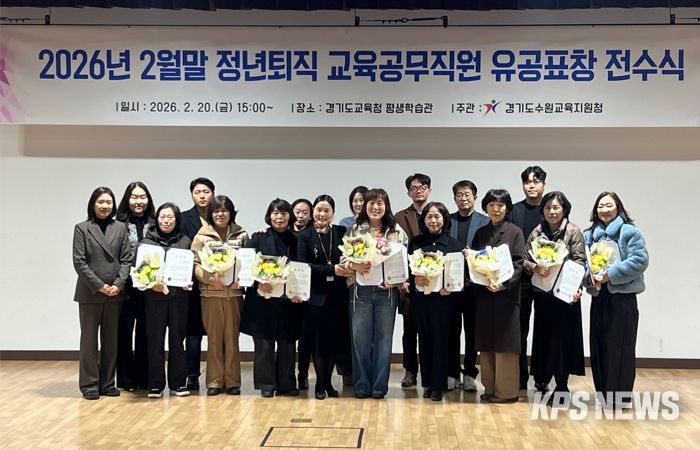 KPSNEWS 김채경 기자 | 경기도수원교육지원청은 경기도교육청평생학습관 2층 강당에서 2026년 2월 말 정년퇴직 교육공무직원 유공 표창 전수식을 개최했다.