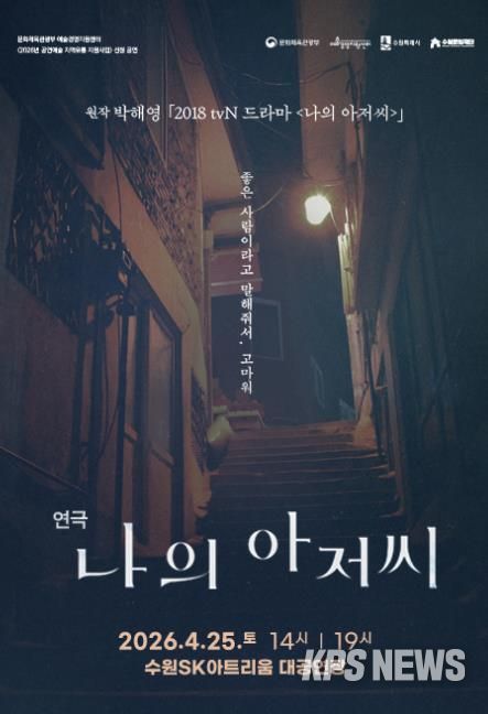 KPSNEWS 김채경 기자 | 수원문화재단 수원SK아트리움은 오는 4월 25일, 수많은 시청자의 인생 드라마로 손꼽히는 tvN 드라마 원작의 연극 ‘나의 아저씨’를 대공연장 무대에 올린다고 밝혔다.