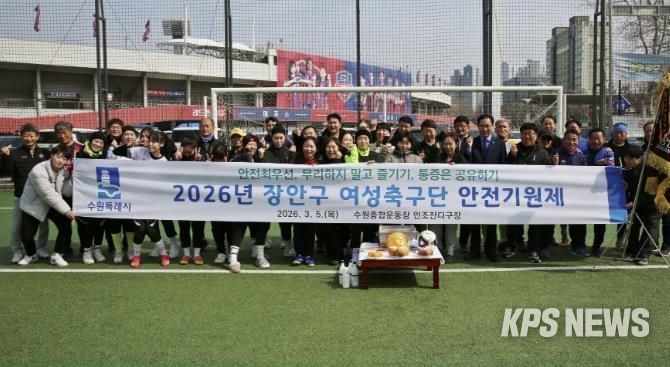 KPSNEWS 김채경 기자 | 수원시 장안구 여성축구단은 지난 5일, 수원종합운동장 인조잔디구장에서 선수단과 관계자 등 30여 명이 참석한 가운데 2026년 안전기원제를 진행했다.