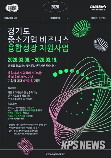 KPSNEWS 김채경 기자 | 경기도와 (재)경기도경제과학진흥원이 도내 중소기업의 혁신 성장과 새로운 비즈니스 모델 발굴을 돕는 ‘2026년 중소기업 비즈니스 융합성장 지원사업’의 참여기업을 모집한다.
