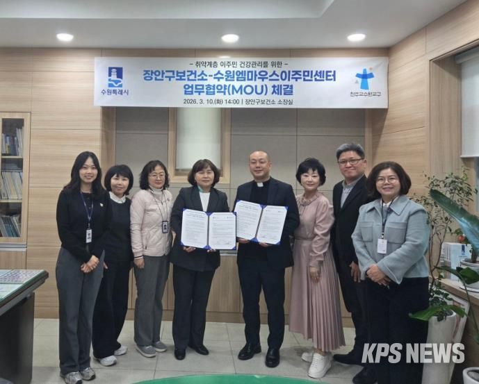 KPSNEWS 김채경 기자 | 수원시 장안구보건소와 수원 엠마우스는 10일 장안구보건소에서 업무협약을 체결하고, 취약계층 이주민 건강관리 지원을 위해 협력하기로 했다.