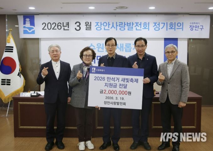 KPSNEWS 김채경 기자 | 수원시 장안구 대표 봉사단체 장안사랑발전회가 지난 19일, '2026 만석거 새빛축제'의 성공적인 개최를 응원하며 지원금 200만원을 전달했다.