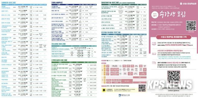 KPSNEWS 김채경 기자 | 수원특례시는 3월 25일 오전 10시부터 수원시 평생학습관 2026년 2분기 프로그램 수강생을 모집한다.