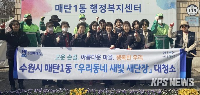 KPSNEWS 김채경 기자 | 영통구 매탄1동 행정복지센터는 지난 24일, '우리동네 새빛 새단장' 사업의 일환으로, 새봄맞이 대청소 및 초화 식재 활동을 실시했다.